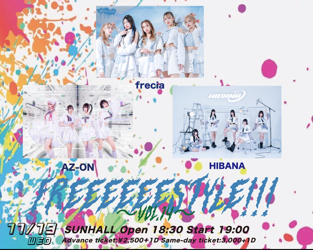 2025 11/19 [水] FREEEEEEESTYLE!!! vol.14 イベント詳細 日付: 2025年11月19日 18:30 – 22:00 Open 18:30 / Start 19:00 ■チケット フロアチケット:一般2,500円 当日3,000円
