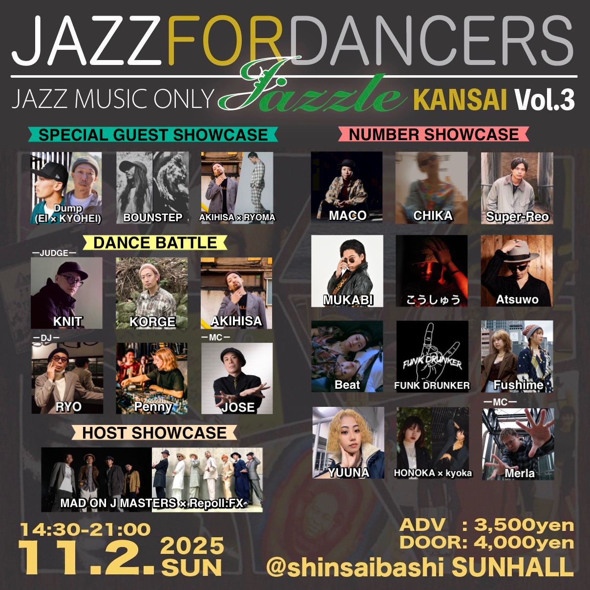 2025 11/2 [日] JAZZ FOR DANCERS イベント詳細 日付: 2025年11月2日 14:30 – 22:00 カテゴリ: ピックアップ OPEN 14:30 前売¥3,500 / 当日¥4,000