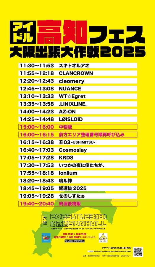 前売3300円/当日3800円(別途1ドリンク代)出演:AZ-ON、いつかの夜に僕たちが、、丑03-USHIMITSU-、鰹選抜2025、CLANCROWN、cleomery、KRD8、Cosmoslay、スキトオルアオ、せのしすたぁ、鳴ル神、NUANCE、WT☆Egret、.LiNIXLiNE.、LØISLOID、lonlium、