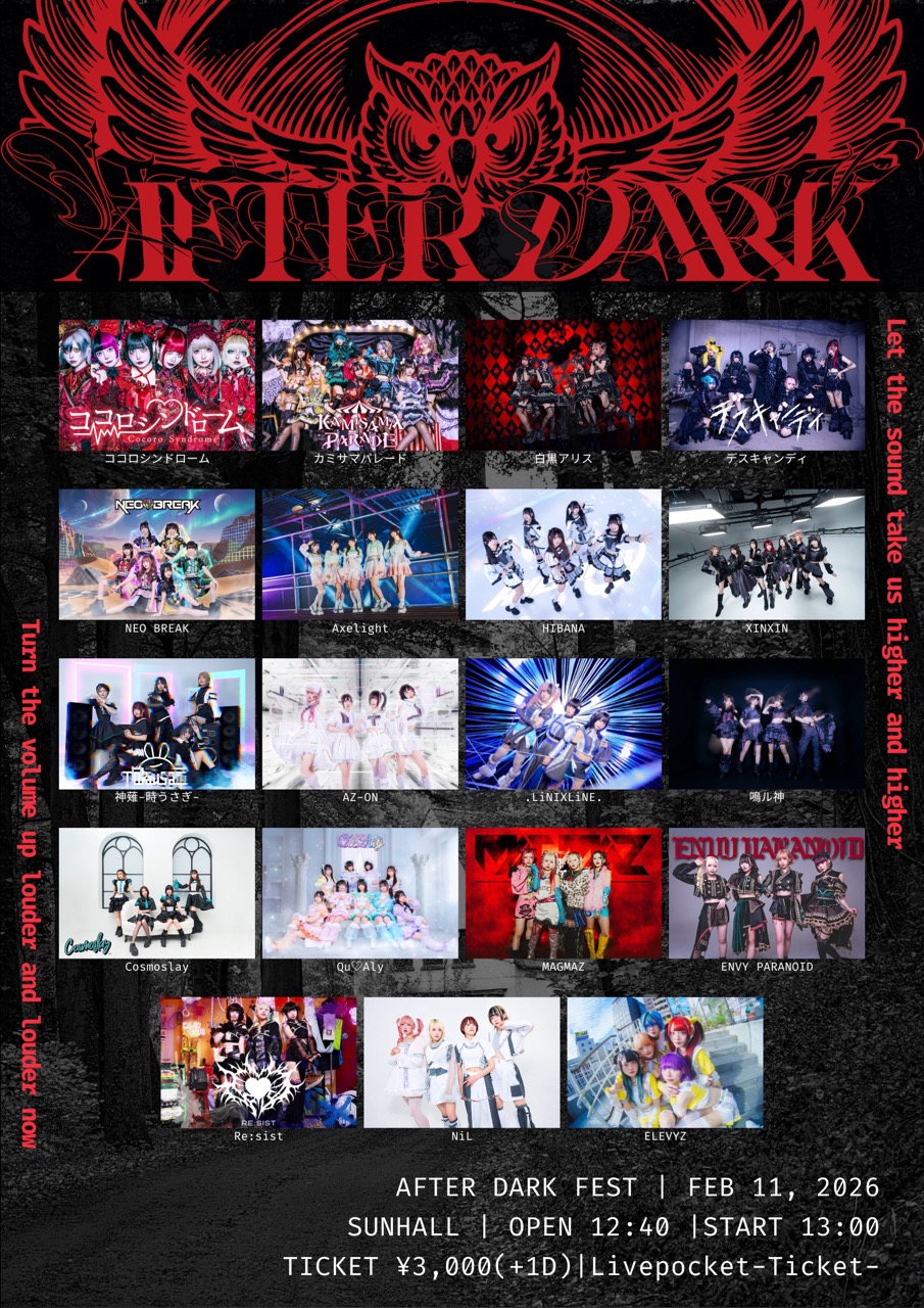 出演:Axelight / AZ-ON / ELEVYZ / ENVY PARANOID / カミサマパレード / 神薙-時うさぎ- / Qu♡Aly / ココロシンドローム / Cosmoslay / XINXIN / 白黒アリス / デスキャンディ / 鳴ル神 / NiL / NEO BREAK / HIBANA / MAGMAZ / .LiNIXLiNE. / Re:sist